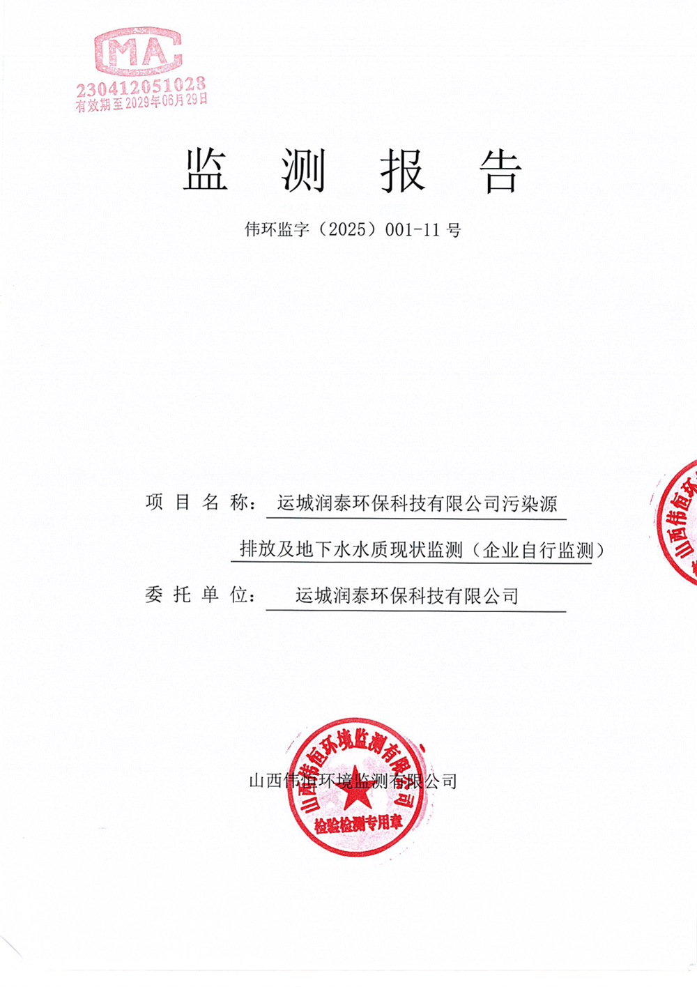 2025年潤泰環(huán)保九月份自行監(jiān)測(cè)報(bào)告